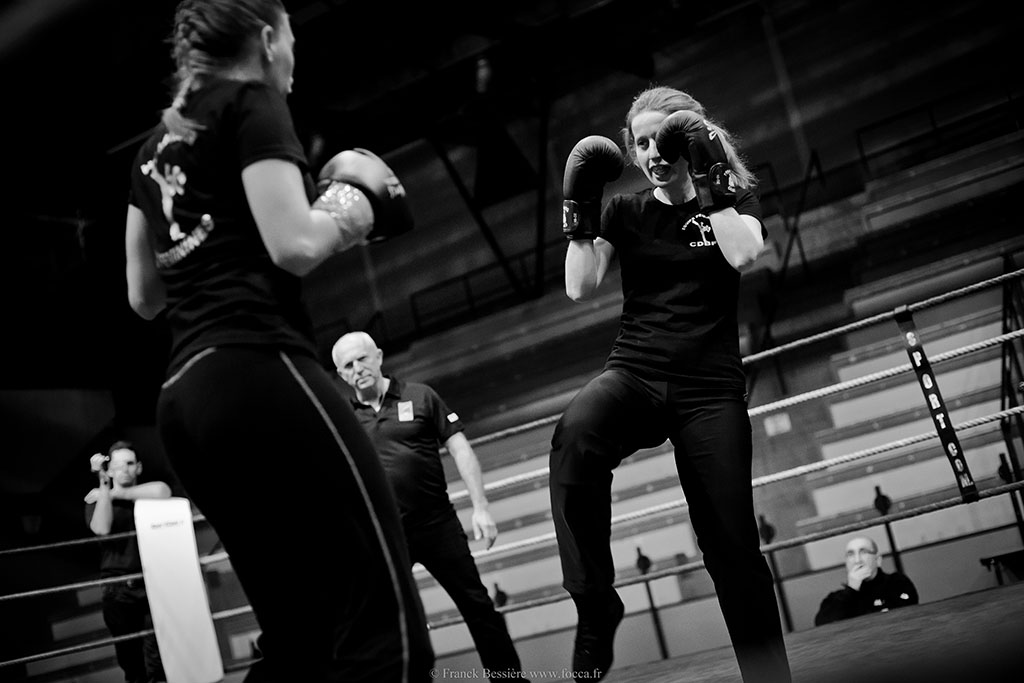 La boxe française se déroule en salle, sur un ring carré d’environ 5 à 6 m de coté appelé enceinte. Les coups sont portés avec les mains et les pieds, les règles en sont bien entendu codifiées. Les rencontres se déroulent sous forme de combats ou d’assauts. Dans ce dernier cas, objet du gala photographié, les coups ne sont pas portés et seule compte la technique. Les assauts sont brefs : 3 reprises de 2 mn.