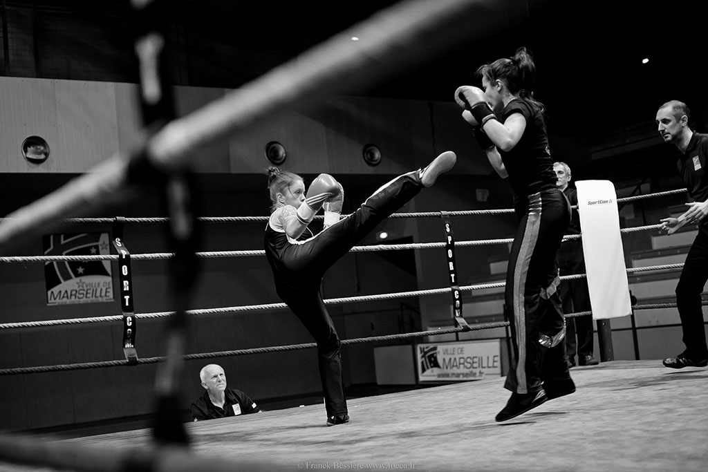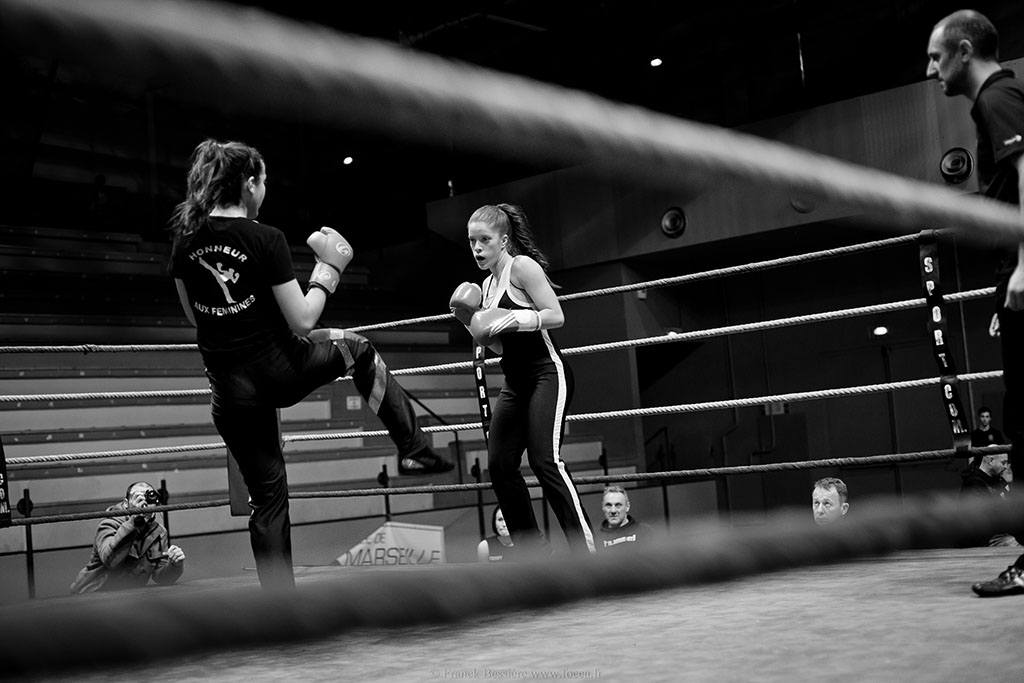 La boxe française, ou savate, est un sport de combat dont l’origine remonte au XIXème siècle. Franck BESSIERE a suivi le gala « Honneur aux féminines » de Marseille le 22 février 2014, et nous montre comment mettre en valeur l’intensité de ces rencontres au plus haut niveau.